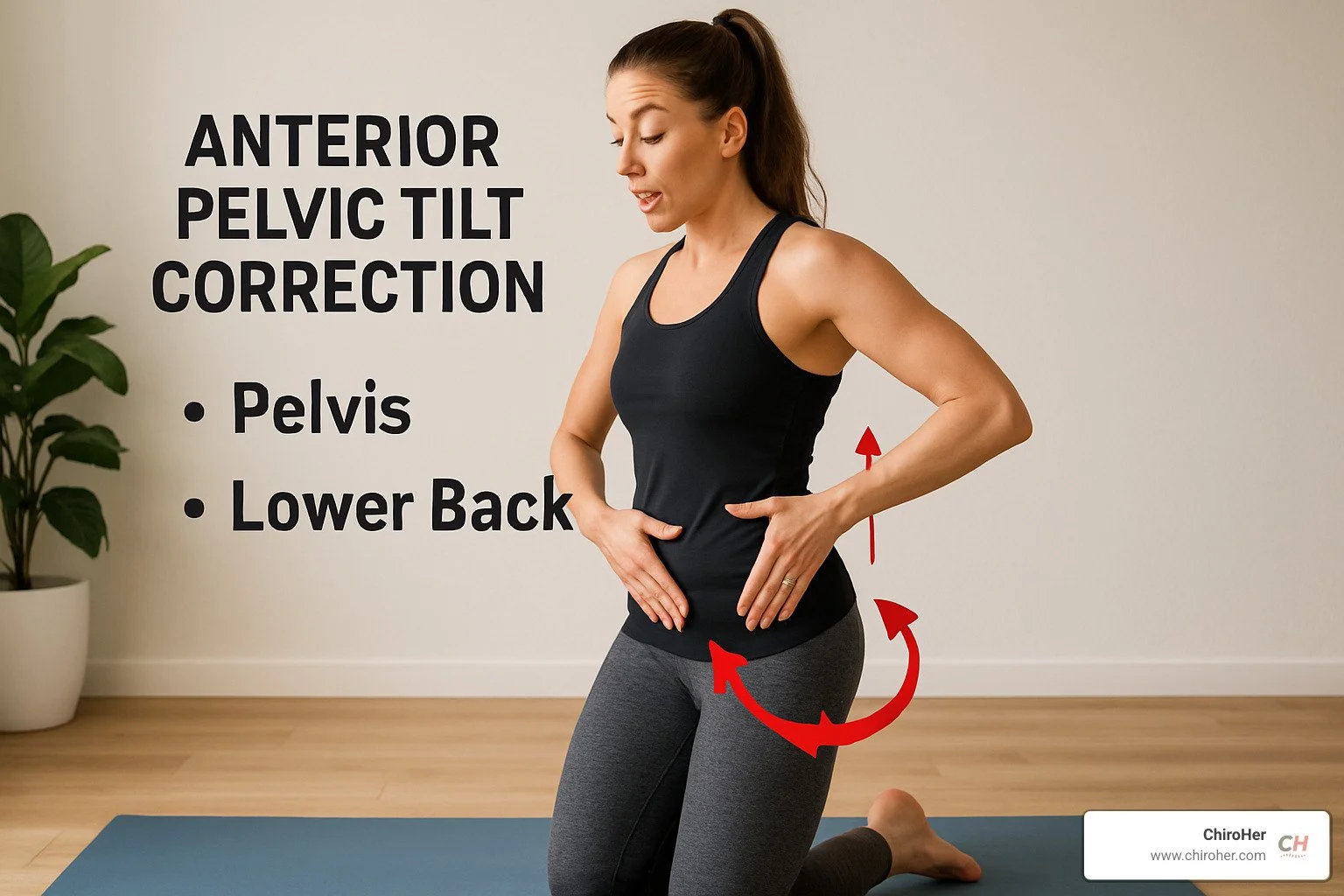 Other moves that work wonders include child's pose for your lower back, warrior II for opening tight hip flexors, and foam rolling your quads to release stubborn trigger points. Each of these addresses a different piece of the anterior pelvic tilt puzzle.