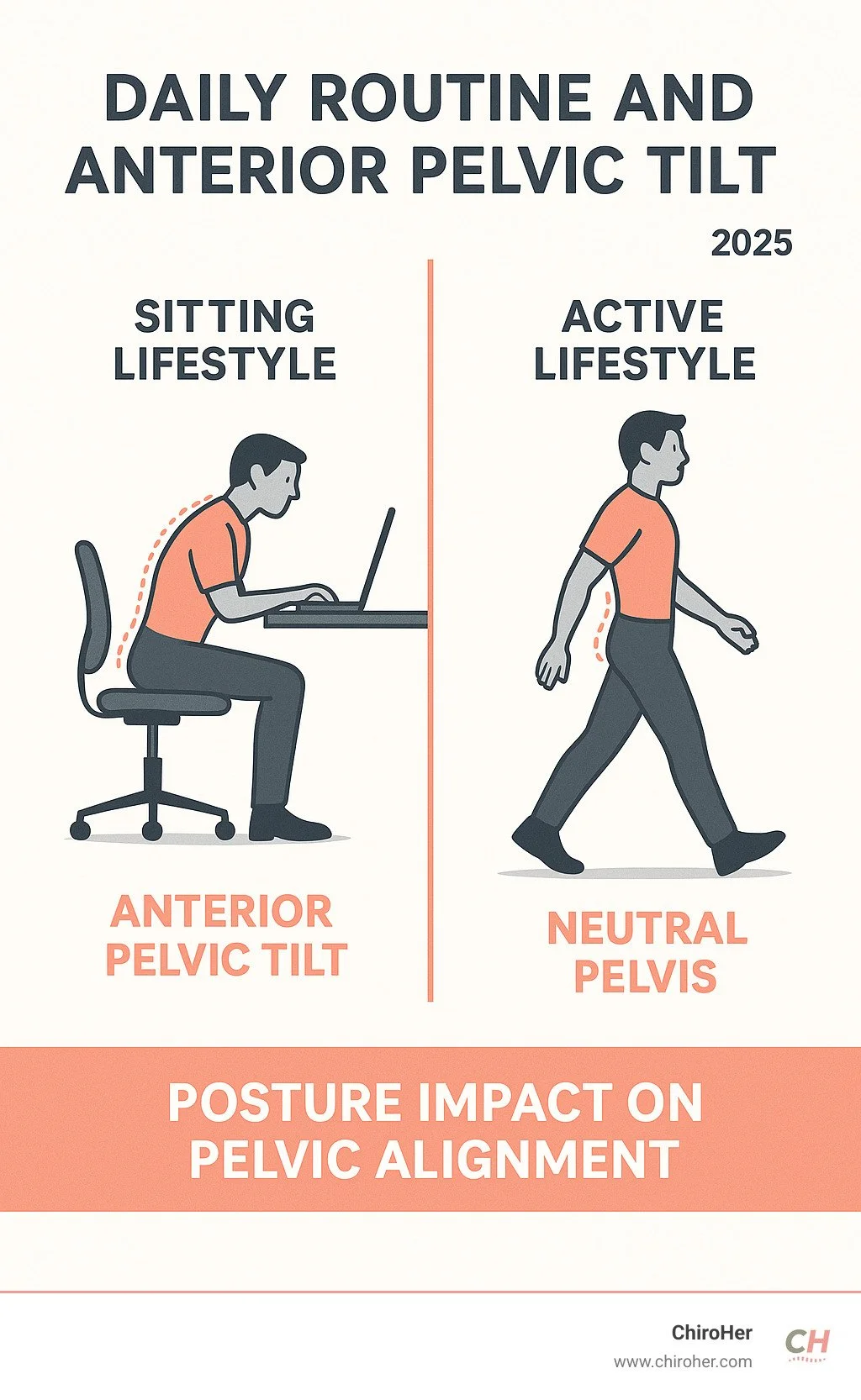 Picture this: you're sitting at your desk right now, reading this article. Your hip flexors are getting shorter by the minute, while your glutes are basically taking a nap. This is exactly how most cases of anterior pelvic tilt start - not with a dramatic injury, but with the slow, steady habits of modern life.