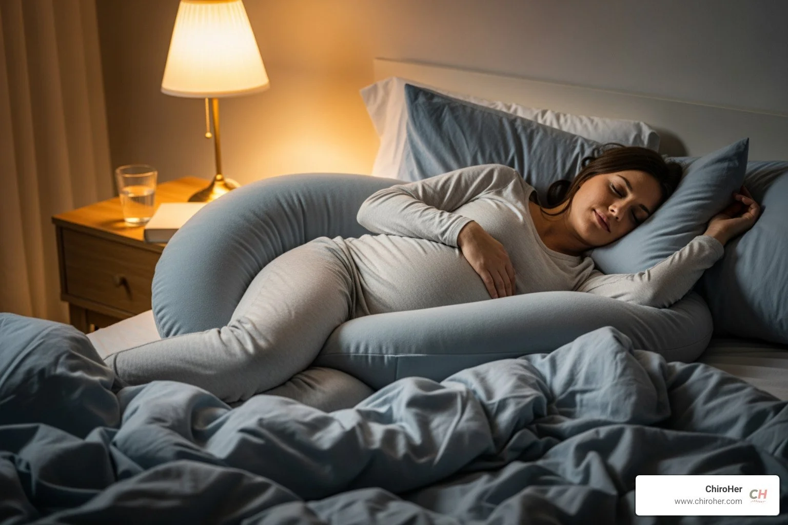Optimize Your Sleep: Sleep on your side with pillows between your knees and under your belly for support. A body pillow can also provide comfort and proper alignment.