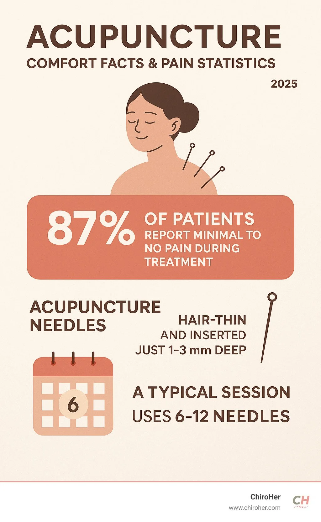 If you've been putting off trying acupuncture because you're worried about pain, I hope this article has put your mind at ease. The truth is, does acupuncture hurt is one of the most common questions we hear at ChiroHer, and the answer is refreshingly simple: it really doesn't hurt much at all.
