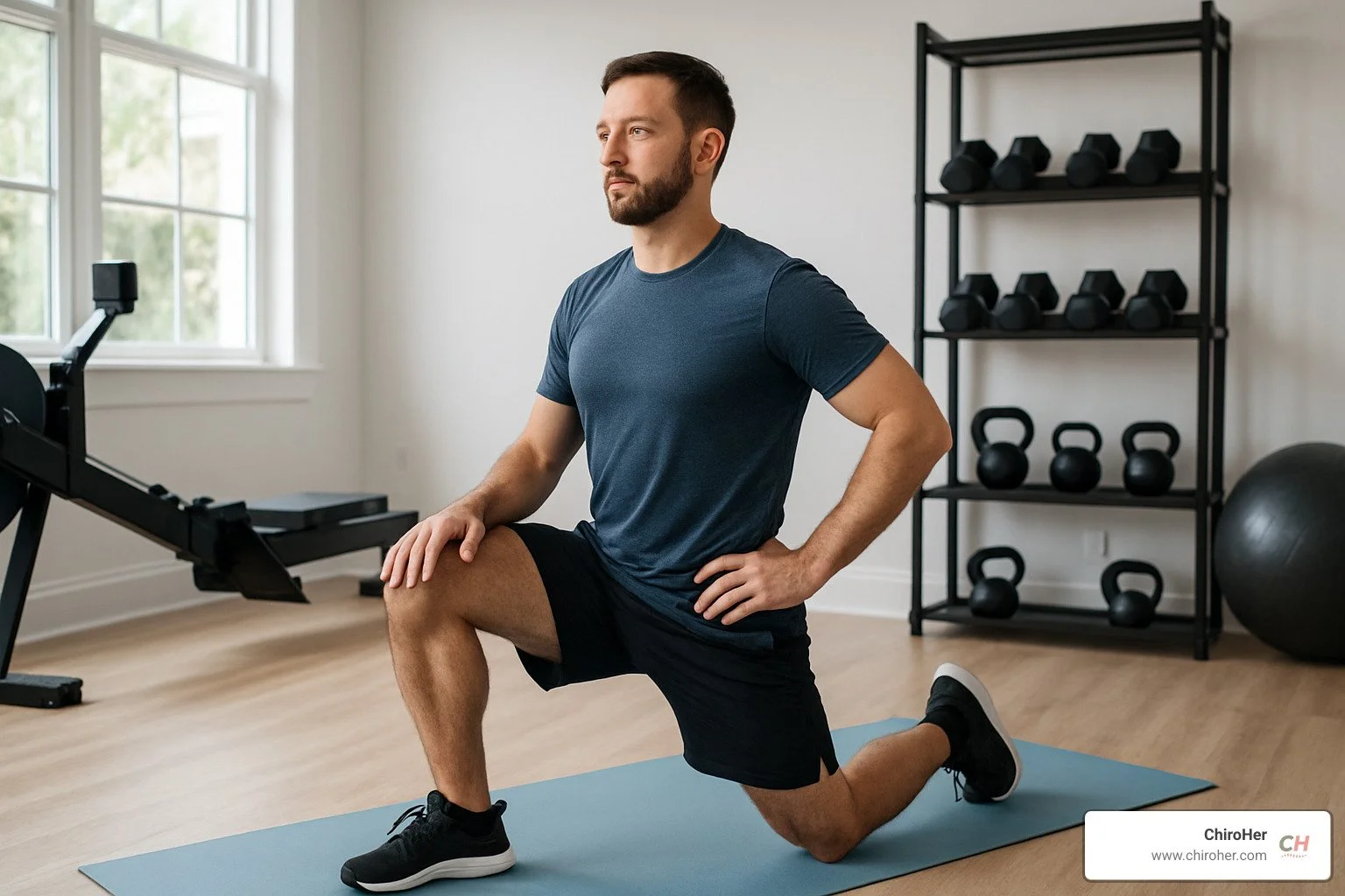 The kneeling hip flexor stretch is your best friend for releasing that front-of-the-hip tension. Start by kneeling with one foot forward in a lunge position. Keep your torso tall and gently push your hips forward until you feel that familiar stretch in the front of your back leg. Hold this for 30 seconds and repeat it 3 to 5 times per side.