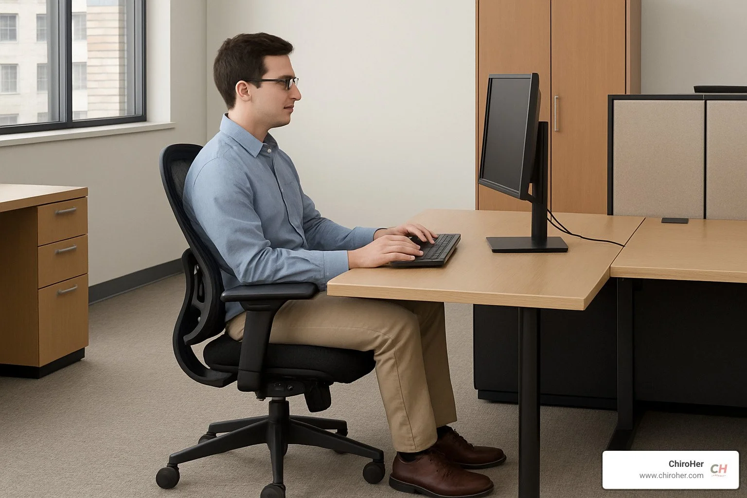 Your workstation setup can be your best friend or your worst enemy when it comes to pelvic health. Position your monitor at eye level to prevent that forward head posture that often goes hand-in-hand with anterior pelvic tilt. A chair with good lumbar support helps maintain your natural back curve without forcing you into an overly rigid position.