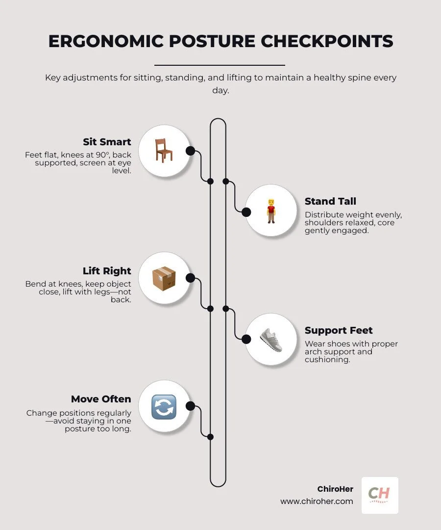 Remember this: the best posture is your next posture. Even perfect alignment becomes problematic if you maintain it too long. Regular movement and position changes matter more than finding the "perfect" position.