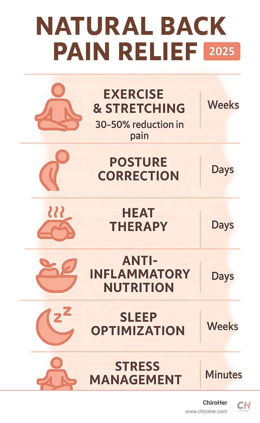 Natural back pain relief offers proven alternatives to medication that address the root causes of your discomfort. Here are the most effective methods backed by research: