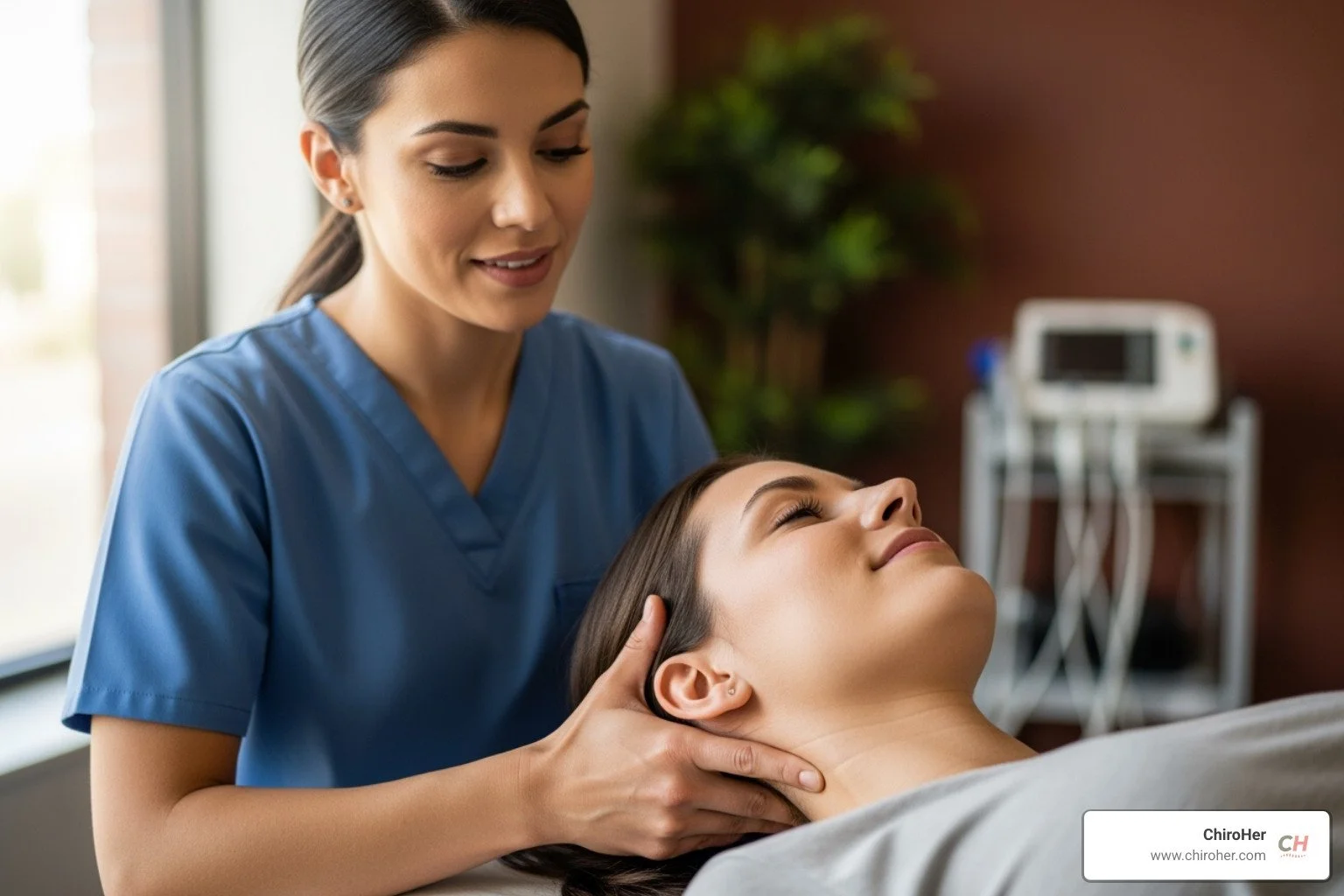 Physiologically, manual therapy can reduce pain signals and facilitate tissue repair. Psychologically, the hands-on intervention itself can be very reassuring and reduce pain. We believe in hands-on healing, a core tenet of our approach at ChiroHer.