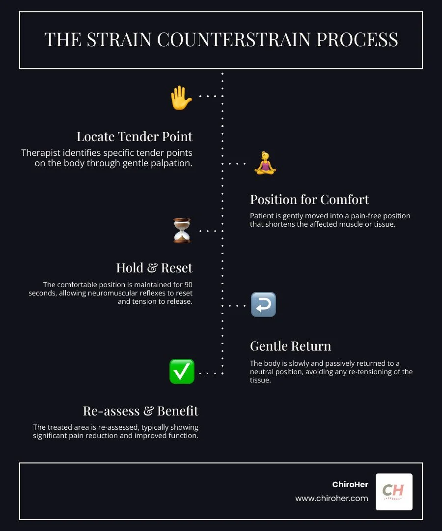At its heart, strain counterstrain pt is a gentle, indirect manual therapy. Instead of aggressive manipulation, it works by identifying specific "tender points" that reflect dysfunctional neuromuscular reflexes.