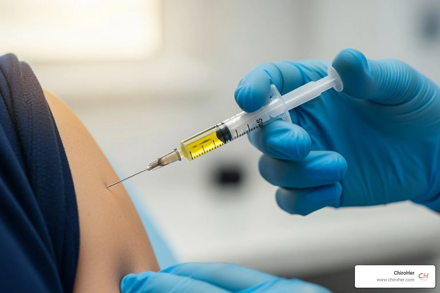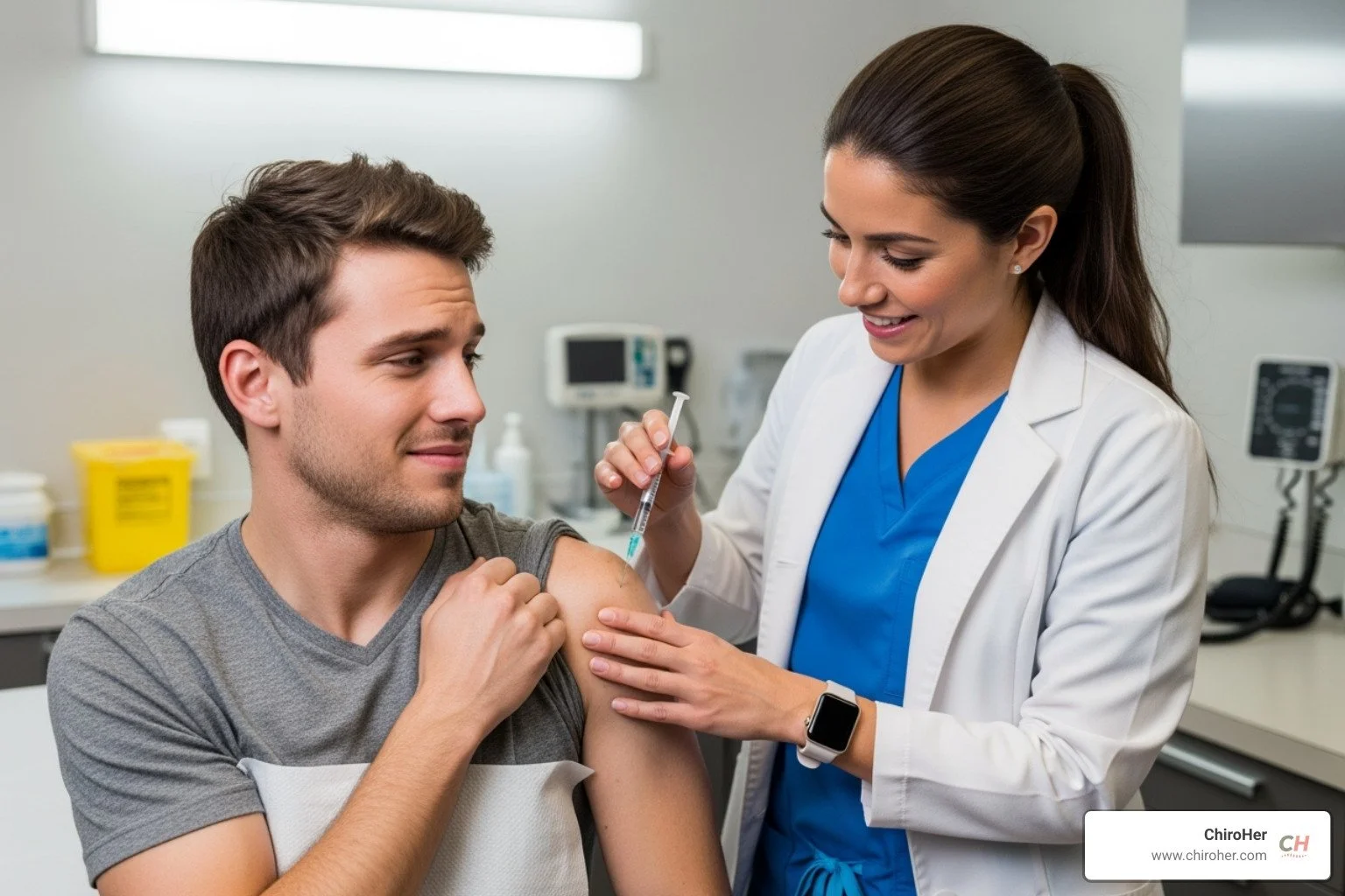 Your provider will choose an injection site, typically the deltoid muscle in your upper arm, and perform important safety checks. They will verify the medication and dosage, check the expiration date, and examine the solution for any issues. They will also confirm your identity and check for allergies, sometimes using a small test dose for thiamine sensitivity.